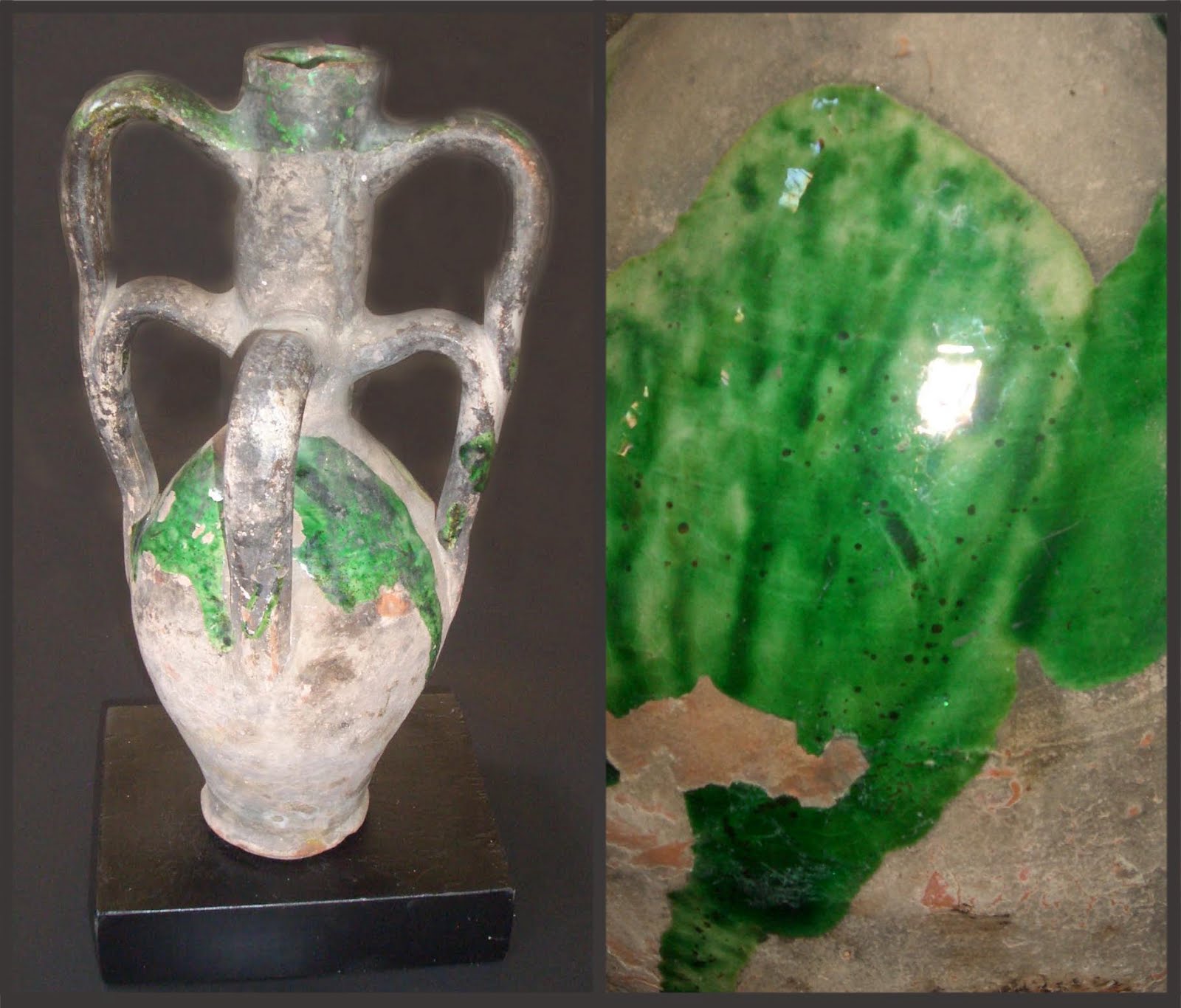 Çanakkale'li seramik sevdalısı Perihan Mut Hanımefendi tarafından tespit edilip, izni ile fotoğrafladığım bu örnek, yeşil rengi ile geleneksel Çanakkale örneklerini andırsa da, altı adet kulba sahip oluşu ile sıra dışı bir örnek olarak karşımıza çıkmakta. Daha önce Geleneksel Çanakkale seramikleri arasında altı kulplu testi daha önce hiç görmedim. Dolayısı ile kesin bir yargıya varmak da güç. Fotoğraftaki seramik hakkındaki yorumları buradan paylaşabilirsiniz.
